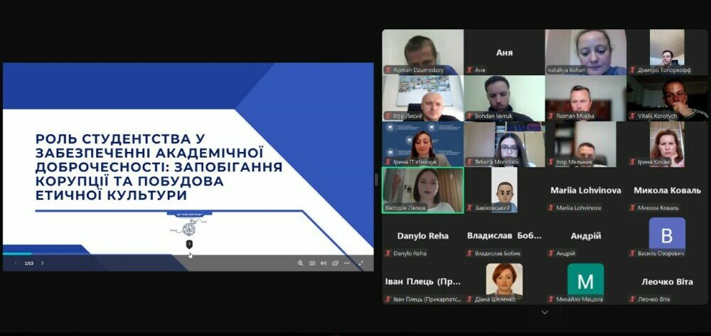 В рамках щорічної школи академічної доброчесності відбувся онлайн вебінар з питань дотримання етики, академічної доброчесності та протидії корупції здобувачами Прикарпатського національного університету імені Василя Стефаника. З вітальним словом виступила перша проректорка Прикарпатського національного університету Валентина Якубів, яка підкреслила важливість дотримання Читати далі
